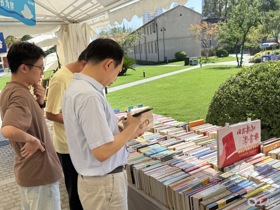 “00后”陈麟在附近工作,趁午休时间和同事一起感受“淘书乐”,“从微信公众号看到信息,立刻就和两位同事约好了。”退休前在银行工作的老孔是看到解放日报的报道,特意从浦东赶来的,“之前去过好几次樱花谷的旧书市集,第一次到校园里来。”