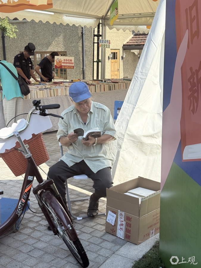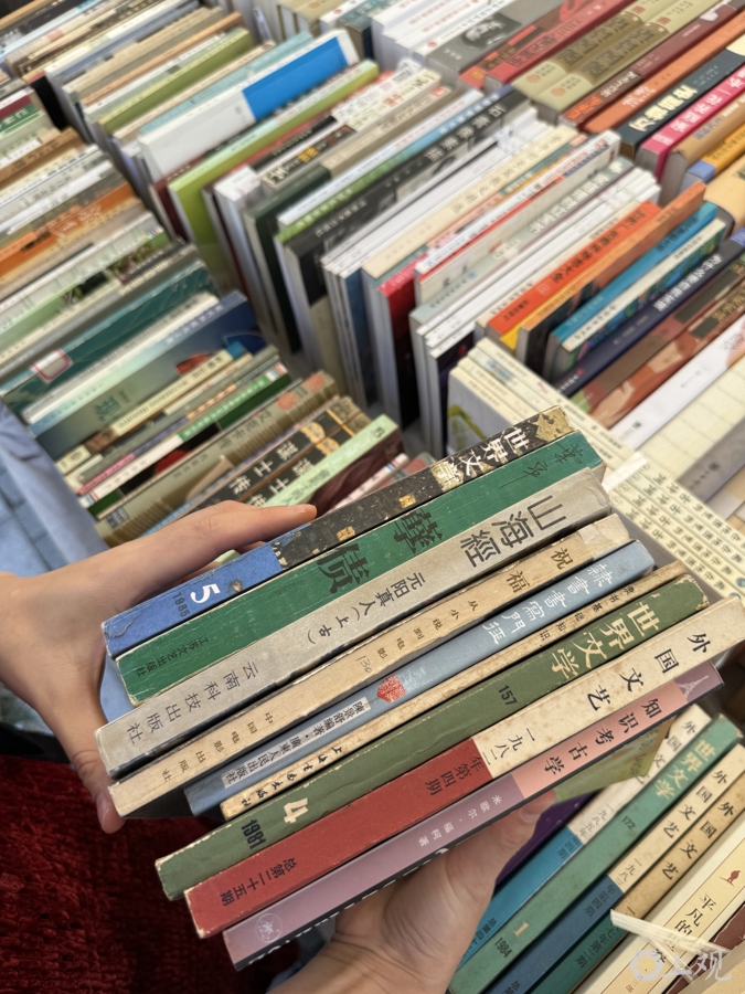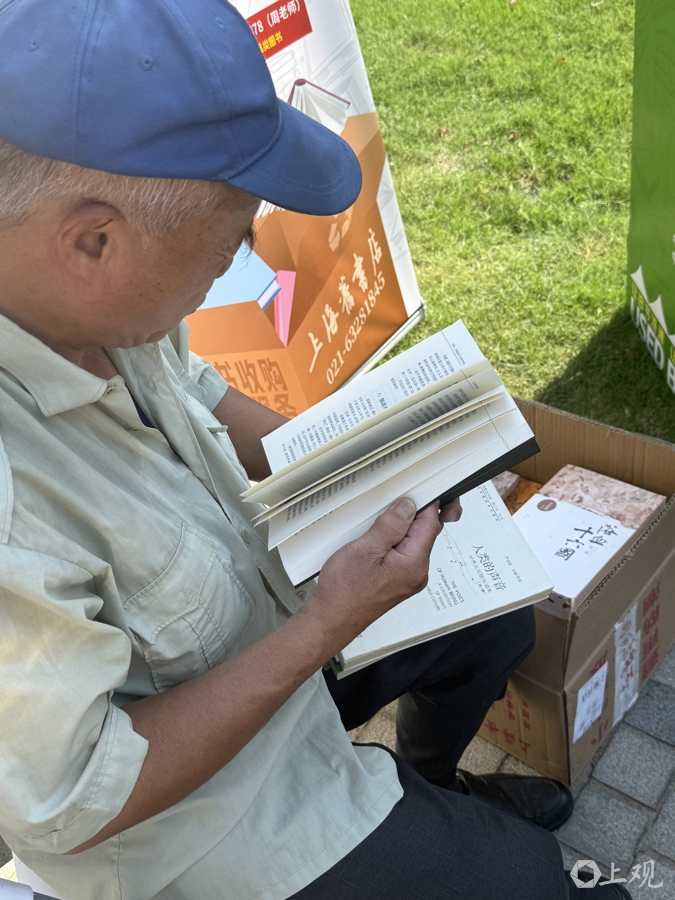 市集一角,老书友陆根耀坐在折叠椅上翻看着刚选好的书。“陆老师,今天又买了多少?”他指指脚边纸箱,又是满满一箱,“估计800元到1000元吧,慢慢‘蚂蚁搬家’搬回去。就是喜欢读书,哪怕翻翻都开心。旧书实惠,来逛逛成习惯了,就是一种生活的乐趣。”