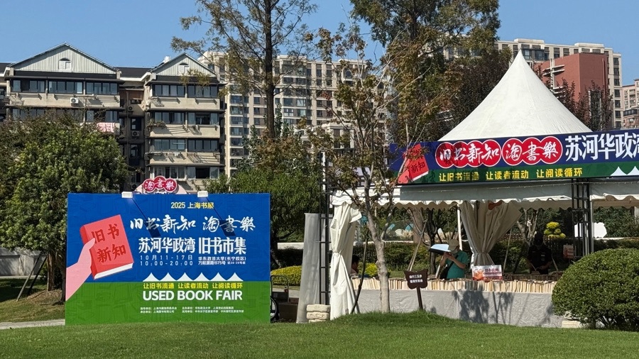 “旧书新知·淘书乐”苏河华政湾旧书市集将持续至10月17日;同一天,普陀桃浦中央绿地也将迎来持续三天的“淘书乐”活动。